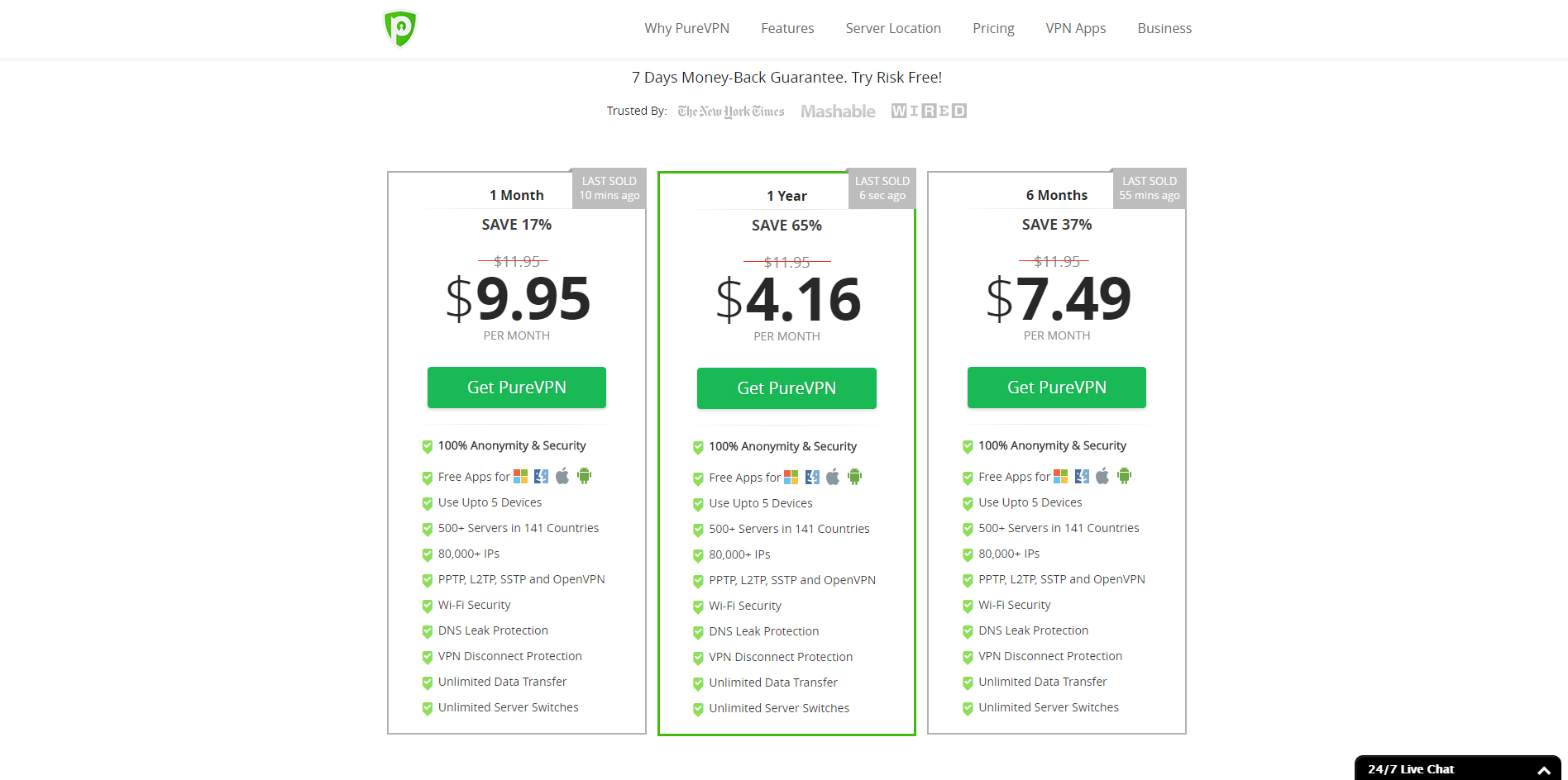 * PureVPN's 7 Day Money-back guarantee is effective only when 'You have not used more than 3GB of bandwidth i.e. data transfer (total upload and download activity using PureVPN) or you have not exceeded 100 sessions i.e. the number of times you connected to PureVPN services. Whichever comes first.'